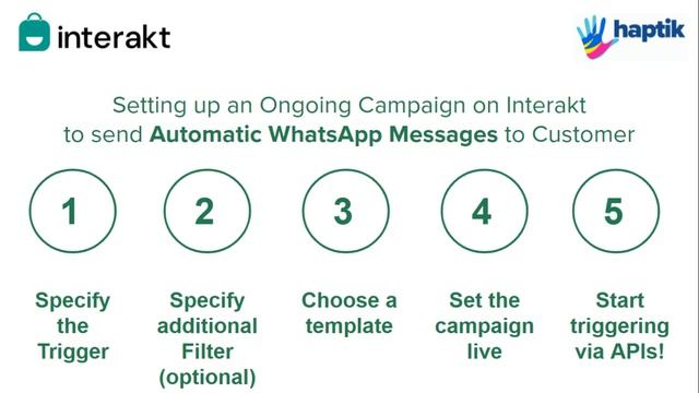 The 1st part of this video explains how your business can use Interakt's Track User and Track Event APIs to add customers and events to Interakt. The 2nd part of this video explains how you can then set Ongoing Campaigns on Interakt to send automatic WhatsApp Notifications to any customer for whom an event is sent via the Track APIs. #notifications #business #WhatsApp #api Know more about WhatsApp Automations? ? Grow your business using WhatsApp Automation https://www.youtube.com/watch?v=glmX5b7tEUY ? How to send product catalog messages in your WhatsApp Auto replies https://www.youtube.com/watch?v=WiIBusUm-kM ? How to add bulk contacts to WhatsApp Business API https://www.youtube.com/watch?v=kjecwSUeg3s ? Automated chat flows to your WhatsApp Campaign https://www.youtube.com/watch?v=dzJ2THryMpY Interested in knowing more about Interakt? ? Visit our Website: https://bit.ly/3x37s2S ? Sign up for a 14-day free trial: https://bit.ly/3PTGB24 (No hidden Costs) ? Still need help? Talk to us on WhatsApp: https://bit.ly/3yUFs4g Subscribe to our YouTube Channel: https://www.youtube.com/channel/UCpS611FX8bGJ_ytTuUQZ65Q Follow us on: LinkedIn: https://www.linkedin.com/company/heyinterakt Twitter: https://twitter.com/heyinterakt Instagram: https://www.instagram.com/heyinterakt Facebook: https://www.facebook.com/heyinterakt