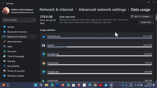 Windows 11 How to view Data usage set data limit and view app data use