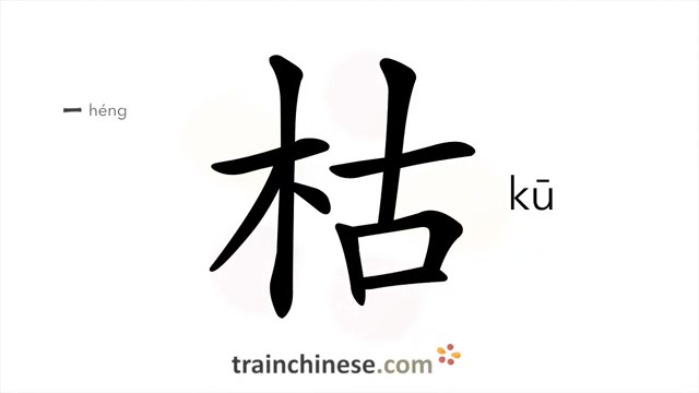 枯 (kū) withered, dried; dull; uninteresting; bone-dry