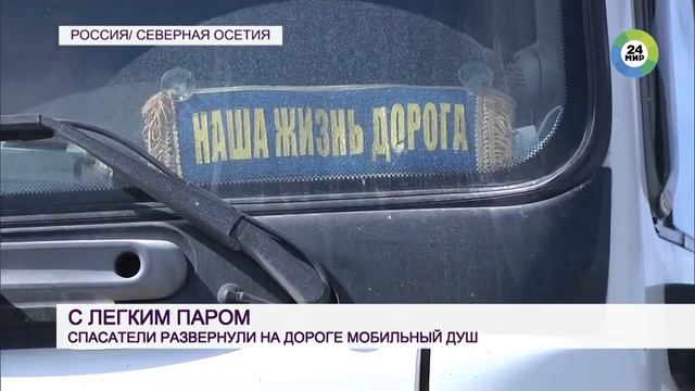 Военно-Грузинская дорога вновь закрыта из-за непогоды. На территории Северной Осетии скопились сотни фур. Накануне в Ардонском районе местные жители накормили водителей большегрузов горячим супом. А сегодня на помощь пришли спасатели, рассказывает корреспондент «МИР 24» Станислав Кантемиров. Пока водители ждут открытия дороги, им приходится решать множество бытовых вопросов. Сегодня на помощь пришли сотрудники МЧС: они развернули на стоянке под Владикавказом мобильный душ. Это большая отапливаемая палатка, куда воду уже подают горячей. В запасе две тонны, этого хватит на сутки работы. Архив от 19.03.2021г.