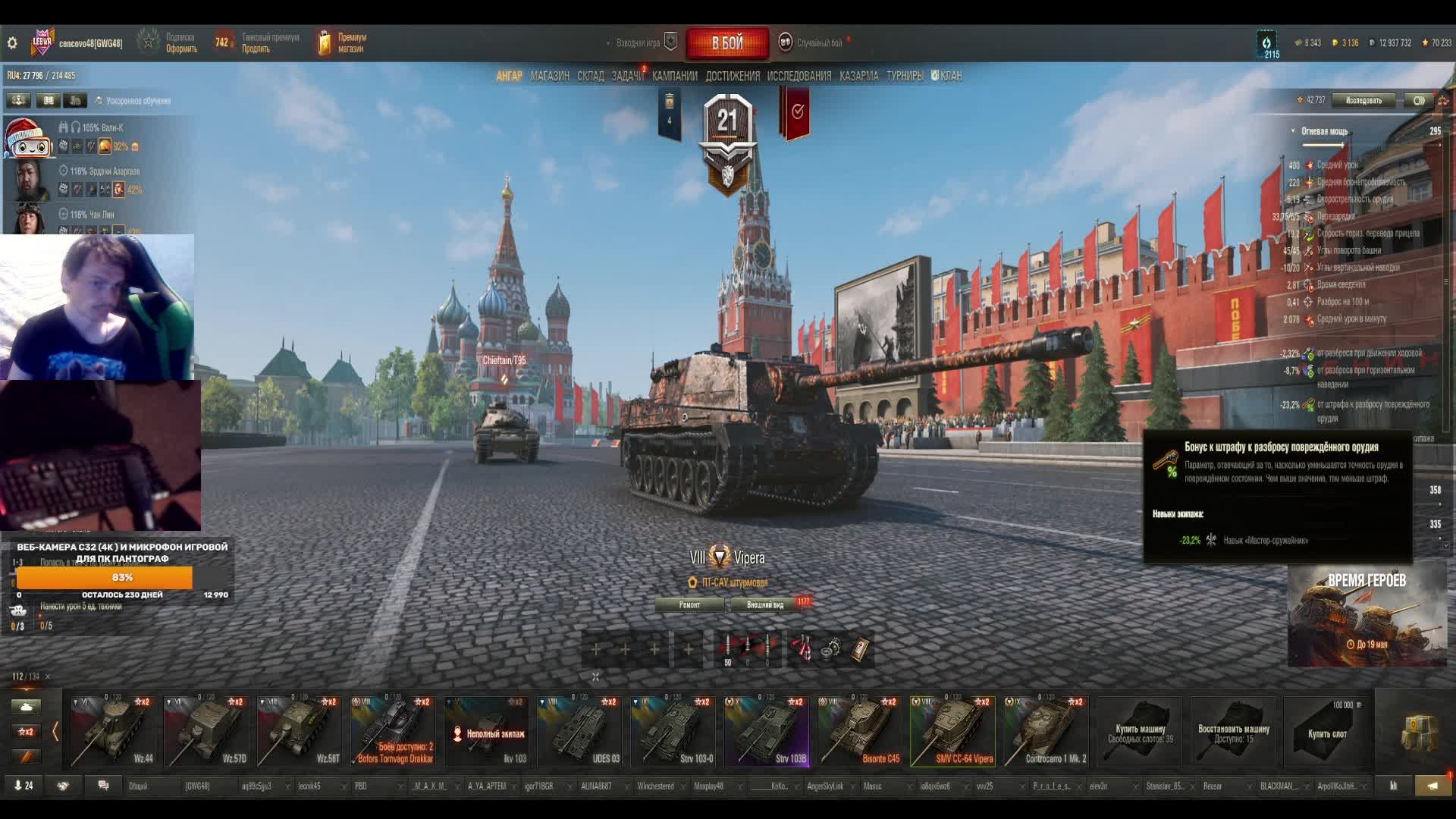 Привет! Добро пожаловать на стрим, самая большая поддержка для меня сейчас это лайк и подписка, поэтому если ты поставишь палец вверх и нажмешь на эту большую красную кнопку я буду очень благодарен мой Trovo https://trovo.live/dmitrypolyakow2010 донат https://www.donationalerts.com/r/gkqqh Группа в ка https://vk.com/public200923194 Telegram https://t.me/cencovo48 дискорд https://discordapp.com/channels/56952... ка https://vk.com/id90471262 мой кланhttps://lesta.ru/clans/wot/450150/ пк Характеристики Процессор AMD Ryzen 7 2700X Материнская плата MSI B350 TOMAHAWK Оперативная память A-Data XPG Gammix D10 [AX4U320016G16A-DR10] 32 ГБ Видеокарта GIGABYTE GeForce GTX 1070 1582MHz PCI-E 3.0 8192MB 8008MHz 256 bit DVI HDMI HDCP WINDFORCE OC rev. 1.0 Блок питания Thermaltake Москва 850W Монитор LG 29WP60G-B [29WP60G-B.ARUZ] клавиатура Defender Doom Keeper GK-100DL (45100) мышь A4Tech Bloody P81s Starlight Микрофон Trust Mico USB Microphone (20378) Веб-камера Defender C-090 Black музыкального центра LG XBOOM DM5360K наушники Sven AP-G888MV Корпус Middle Tower AeroCool "BattleHawk