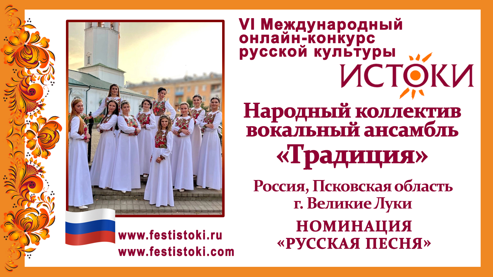 Вокальный ансамбль "Традиция". Россия, Псковская область, г. Великие Луки. "На закате розовом"