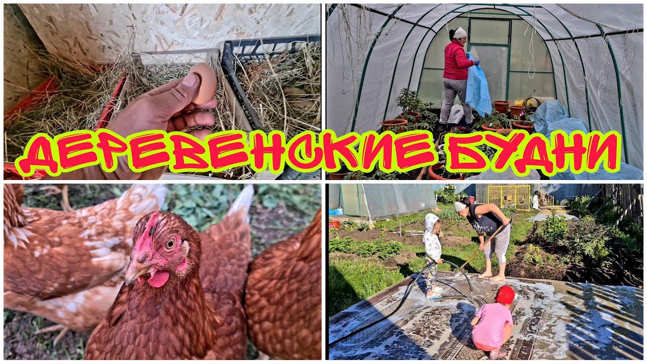Кура несушка снесла яйцо//Стирка ковра//Похолодало,укрываю грядки//Жизнь в деревне