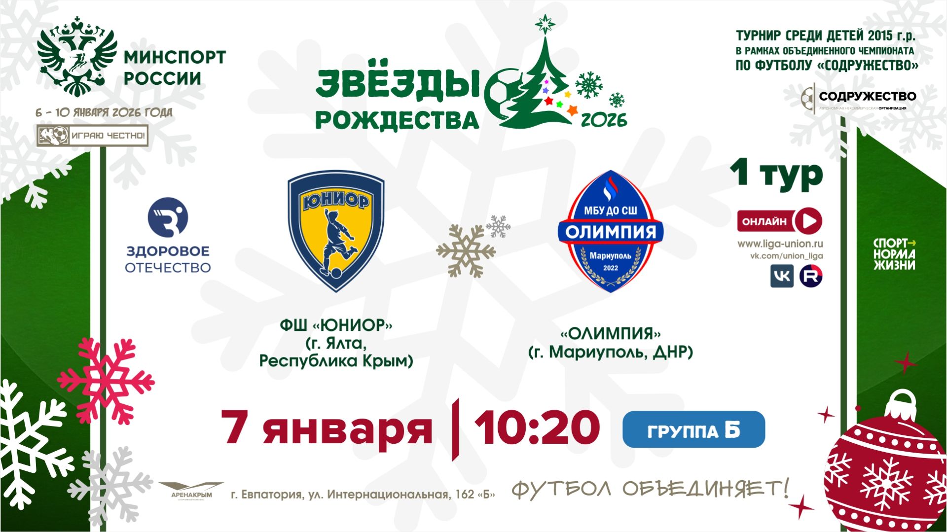 1 ТУР [Б] | ФШ «Юниор» (г. Ялта, РК) - СШ "Олимпия" (г. Мариуполь, ДНР) | 7.01.2026
