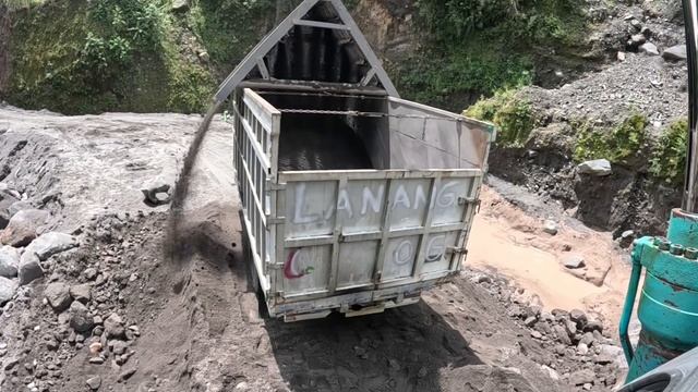 Строительство, экскаватор копает песок