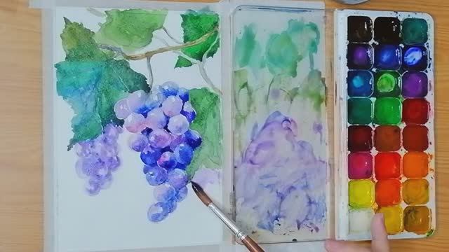 Просто и реалистично Лёгкое рисование для начинающих Веточка винограда Акварель