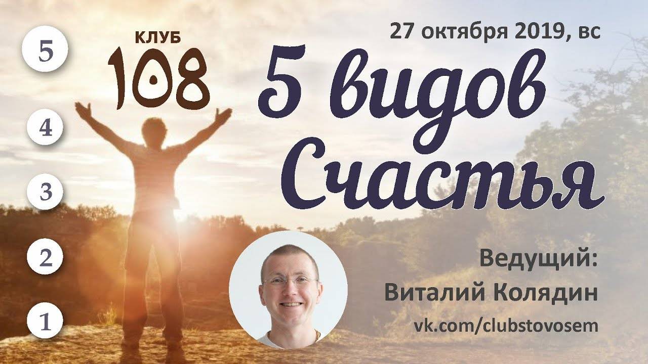 5 видов счастья. Виталий Колядин. Клуб 108. 2019.10.27 Череповец