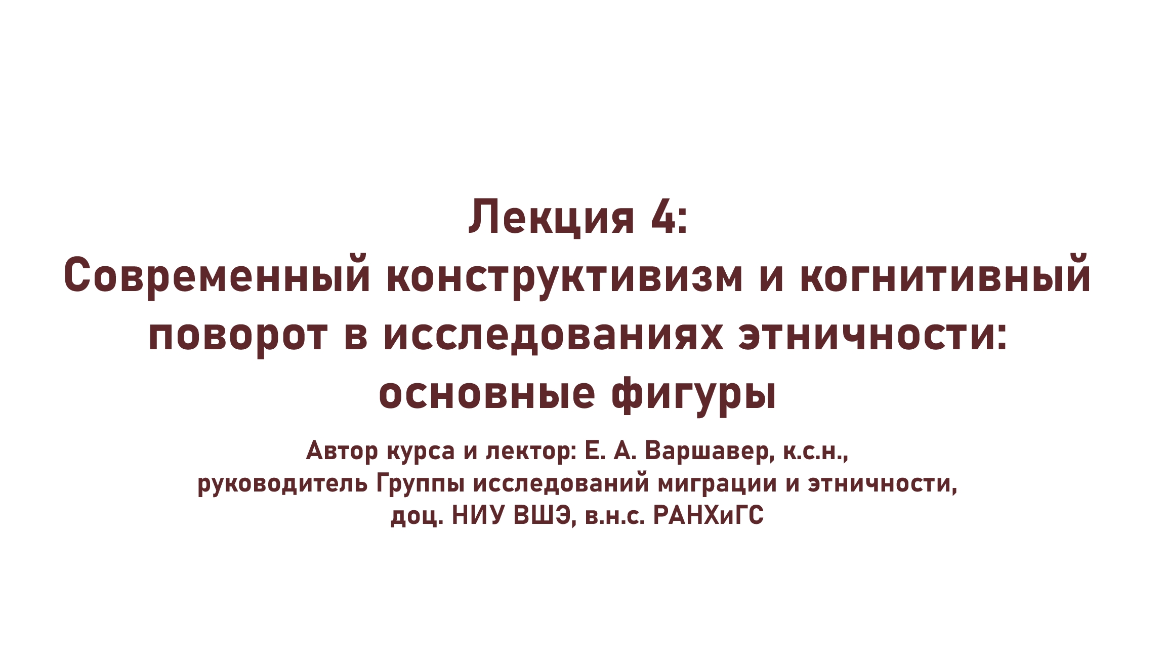Традиция, основанная манчестерцами и Бартом, получила продолжение. На основании их работ постепенно уточнялся объект исследования, складывался язык и эмпирические подходы. Дональд Горовиц и этничность как когнитивно и социально расширенное родство. Ричард Дженкинс и базовая антропологическая модель этничности. Роджерс Брубекер, отказ от групп и объявление когнитивного поворота в исследованиях этничности. Андреас Виммер и фокусировка на исследовательских дизайнах для изучения этничности. Канчан Чандра и номинальные vs. актуализированные идентичности (этнические категории). Все это оказывается в фокусе четвертой лекции. Автор курса и лектор: Е. А. Варшавер, кандидат социологических наук, руководитель Группы исследований миграции и этничности, доцент НИУ ВШЭ, ведущий научный сотрудник РАНХиГС. Сайт Группы: https://mer-center.ru Наш Телеграм-канал: https://t.me/cleanponds747