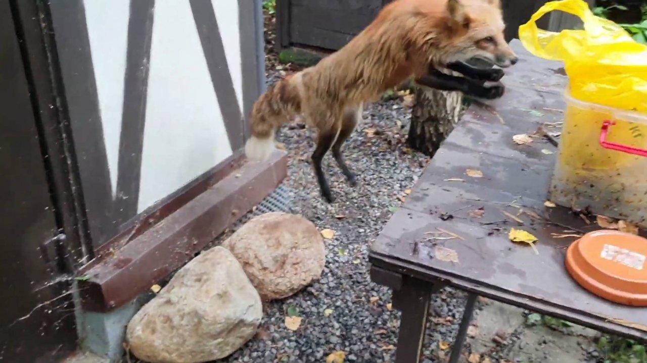 Лиса-Алиса. Хулиганское поведение лисы при виде желтого пакета
