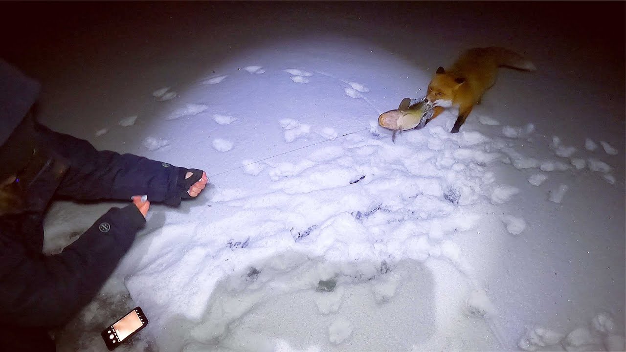 Лиса "ОТЖИМАЕТ" налима / Fox "PRESS" is cod