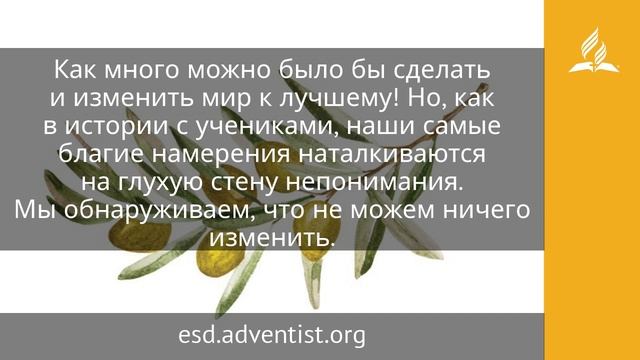Кто-то из толпы вдруг закричал: «Учитель, прошу, взгляни на сына моего, один он у меня! Какой-то дух овладевает им, и тогда он внезапно вскрикивает, его сводит судорогами, изо рта идет пена, и дух, истерзав его, уходит только после усиленной борьбы. Просил я учеников Твоих изгнать беса, но они не смогли (Лк. 9:38–40; ИПБ). Чтобы вернуть человека в реальность, мы говорим ему: «Спустись с небес на землю». Схождение с горы Фавор вернуло учеников к реальности: они не смогли изгнать нечистого духа болезни: «Я просил учеников Твоих изгнать его, и они не могли» (Лк. 9:40), — говорит отец больного ребенка у подножия горы Преображения. Нам как ученикам Иисуса, наверное, тоже хотелось бы иметь власть над бесами, людьми, обстоятельствами. Хотелось бы обладать властью менять других: больных делать здоровыми, злых добрыми, неверующих делать верующими, вредные привычки заменять на здоровые. Как много можно было бы сделать и изменить мир к лучшему! Но, как в истории с учениками, наши самые благие намерения наталкиваются на глухую стену непонимания. Мы обнаруживаем, что не можем ничего изменить. Вопреки ожиданиям после схождения с горы Преображения они не начинают триумфальное восхождение в Иерусалим. Более того, Лука рассказывает об их неудачах: они не могли изгнать злого духа, спорили о том, кто из них больше, предлагали низвести огонь с неба на тех, кто был с ними не согласен. Несмотря на то, что устами Петра они исповедали веру в Иисуса как Мессию, им все еще недоставало ни веры, ни понимания, ни духовной зрелости. Вещи, которые для нас кажутся очевидными, на самом деле совсем не очевидны. Чтобы во всем разобраться, необходимы время и опыт. Недостаточно юношеского энтузиазма, нужна еще и житейская мудрость. Для того чтобы принять ответственность, нужно быть готовым. Чтобы менять других, нужно самому поменяться. Так в жизни то, что мы считаем кульминацией, высшей точкой, может быть только началом для следующего этапа нашего роста. https://esd.adventist.org/library/periodicals/ezhednevnyie-chteniya/ #адвентисты #АдвентистыСедьмогоДня #Церковь #ЦерковьАдвентистовСедьмогоДня #ЦерковьХристианАдвентистовСедьмогоДня