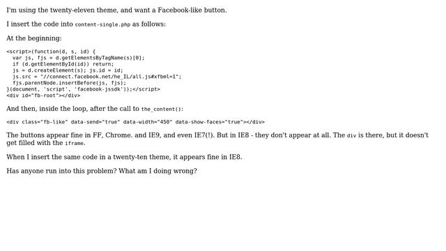 Wordpress: facebook like on twenty eleven