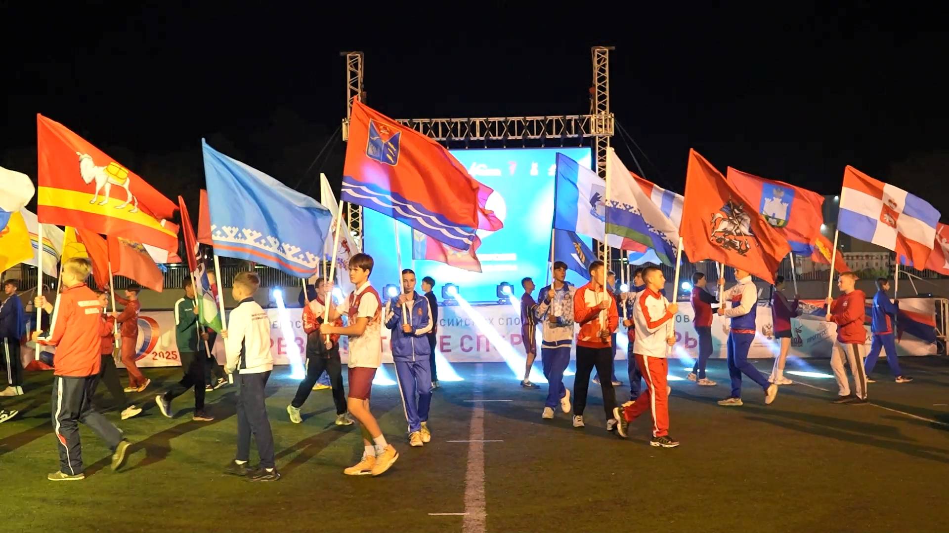 Торжественная церемония открытия Всероссийских спортивных игр школьников прошла в ВДЦ "Смена". В этом году продемонстрировать свои умения и побороться за главный приз - кубок Президента России приехали ребята из 83 регионов страны. Участников игр приветствовали первый заместитель Министра просвещения РФ Александр Бугаев, двукратный призер паралимпийских игр и многократная чемпионка России по плаванию Юлия Шишова, руководитель департамента молодежной политики Кубани Роман Дмитриев, вице-мэр Анапы Наталья Рябоконь и директор ВДЦ "Смена" Игорь Журавлев.