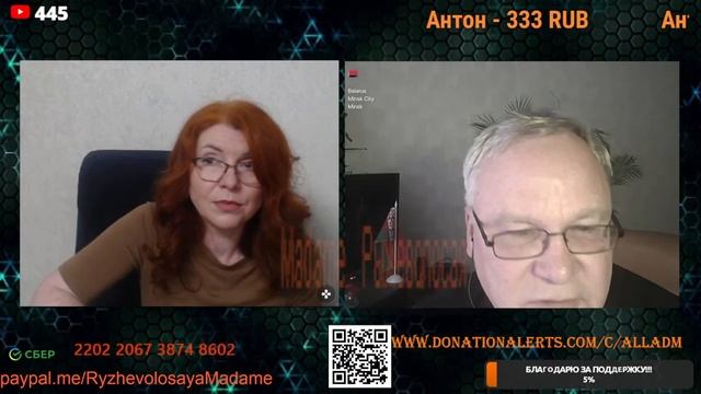 Стримы проводим на новом канале по ссылке https://www.youtube.com/channel/UCpd7cP8a8TbXkhRfZB9-V1g также стримы можно смотреть на следующих платформах https://vkplay.live/rmadame https://vk.com/video/ @RMadame https://boosty.to/ryzhevolosaya-madame Свежие нарезки можно смотреть https://dzen.ru/redheadmadamchat?share_to=link https://www.youtube.com/@RMadam1 https://www.youtube.com/@RMadame Пообщаться в голосовом чате, обсудить новости и узнать первым о предстоящем стриме можно подписавшись на телеграмм канал https://t.me/redheadMadamchat Все беседы ведутся с развлекательной целью и не направлены на разжигание какой либо вражды. Поддержать меня карта Сбер 2202 2067 3874 8602, Тинькофф 2200 7009 0724 4924 или голосовым донатом по ссылке https://www.donationalerts.com/r/alladm Для вопросов и предложений @RedHeadMadamBot