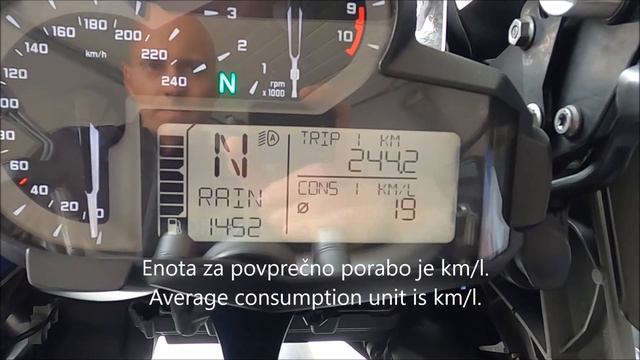 BMW R1200GS, MY2014 – average consumption unit change - sprememba enote za prikaz povprečne porabe