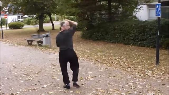 eine Hong Dong Form... die Metallstange auf dem Rücken tragen Schule Wuppertal Dirk Lehmann