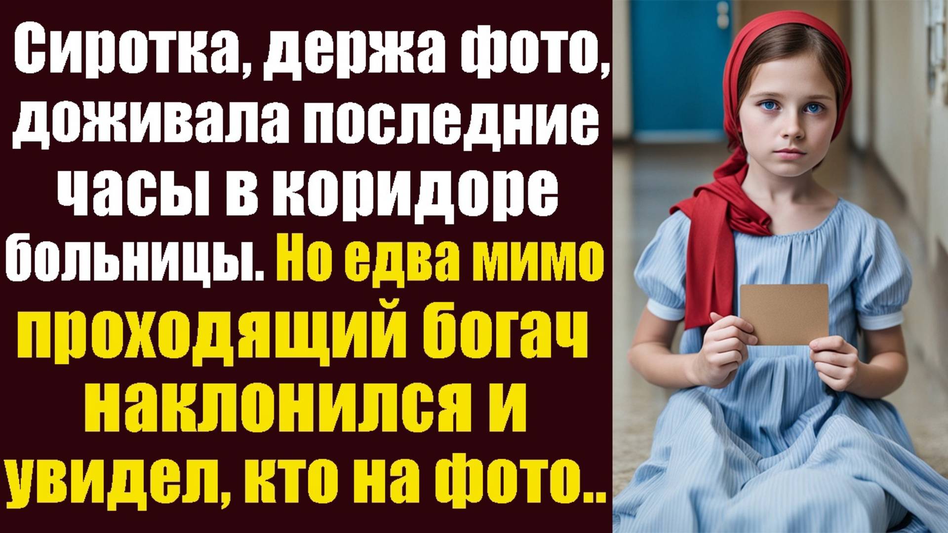 Душевная история о том, как Сиротка, держа в руках фото, доживала последние часы в коридоре больницы. Но едва, мимо проходящий богач наклонился с просьбой отойти и увидел кто на фото….