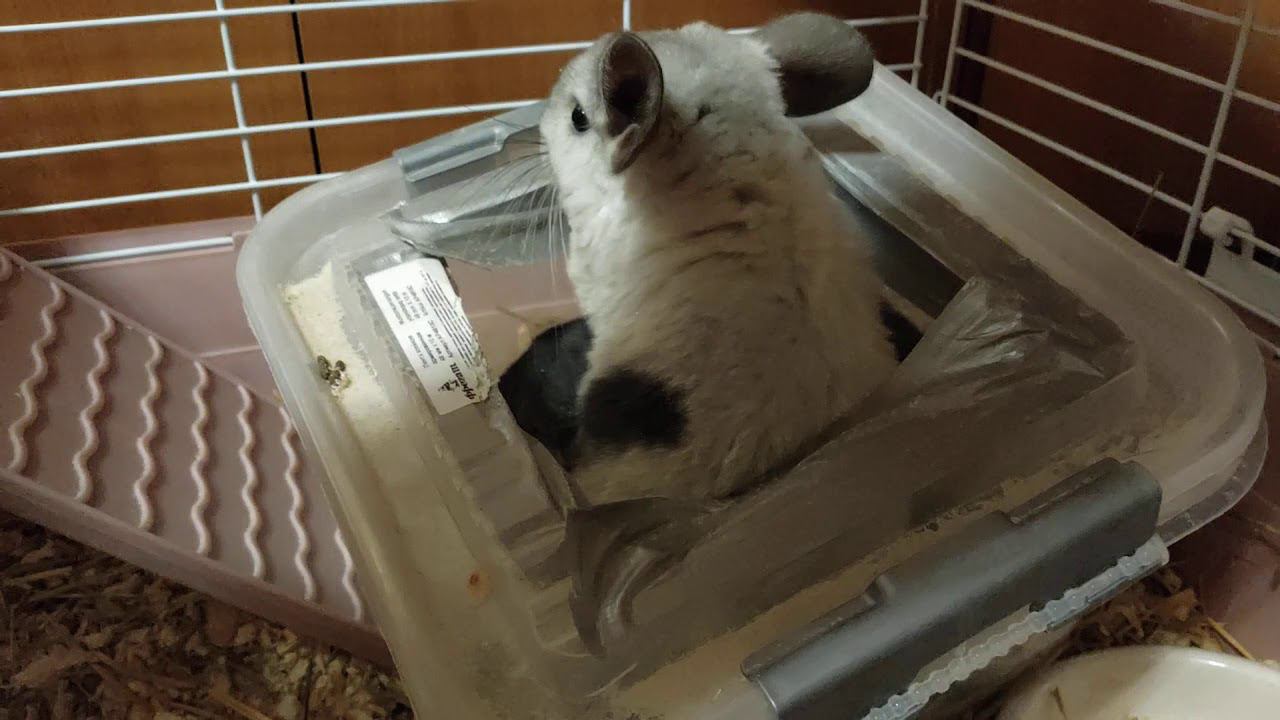Шиншиллы моются в песке. Домашние животные. Грызуны.