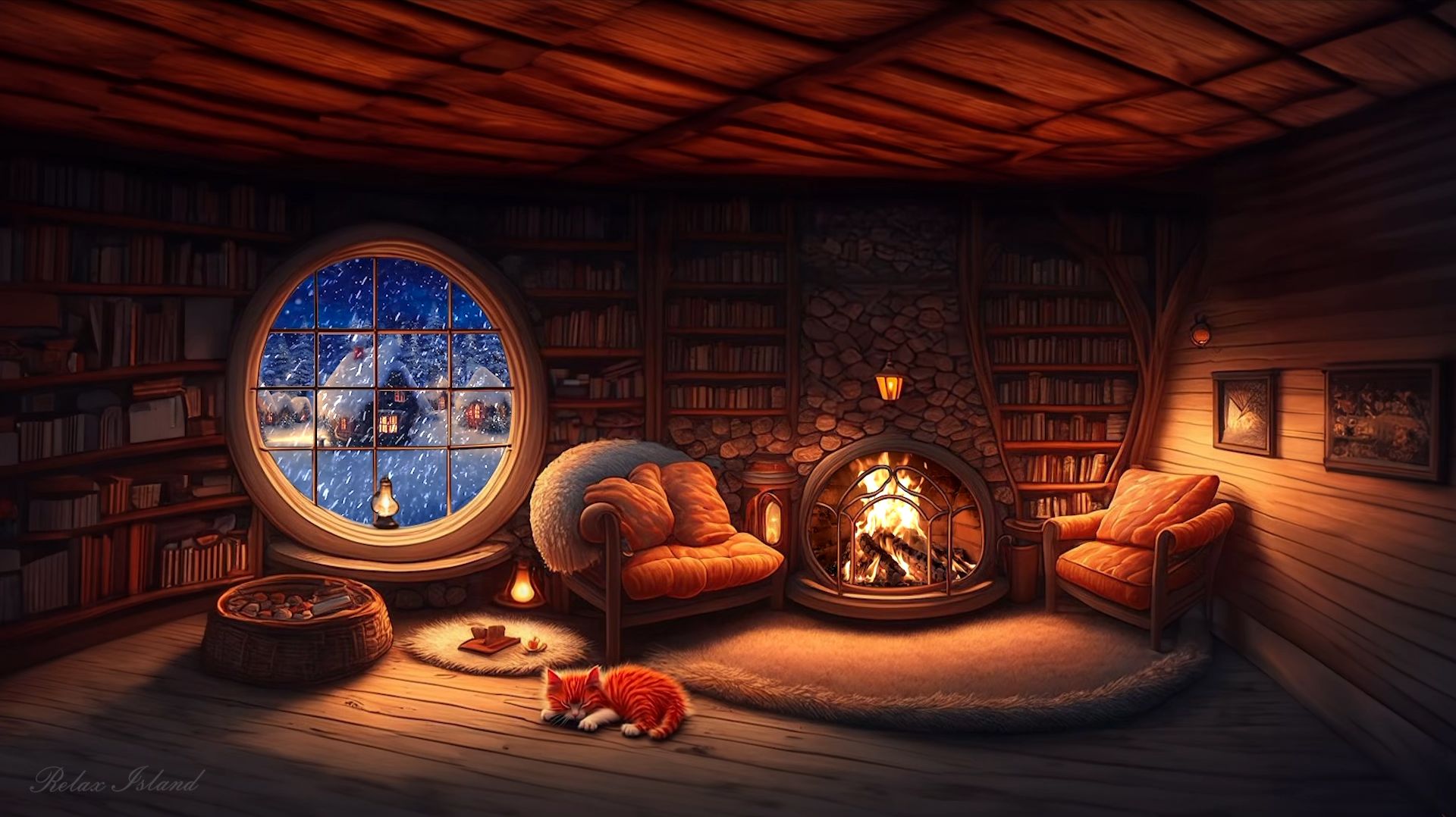 Просто очень красивый рождественский джаз у камина, в уютной библиотеке с большим окном! В камине горит огонь, а за окном разыгралась настоящая зимняя сказка, на дворе вечер, снег кружится заметая дома напротив и играет музыка для души! На коврике у камина уснул рыжий котенок, свернувшись в клубочек, и успокаивающая музыка для сна, создают идеальную атмосферу для релаксации! Тёплый свет от огня мягко освещает книжные полки, на которых рядами стоят старые тома в кожаных переплётах. Тени от пламени мерно танцуют по стенам, делая комнату ещё более уютной. Лёгкие джазовые аккорды, нежный звук саксофона и мягкое пианино словно обнимают пространство, наполняя его теплом и праздничным настроением. За окном медленно падают снежинки, каждая из них отражается в стекле и вкрадчиво мерцает в свете уличных фонарей. В комнате слышно только тихое потрескивание дров в камине, ровное дыхание спящего котёнка и ненавязчивая рождественская мелодия, плавно перетекающая из одной темы в другую. Удобное кресло у камина, тёплый плед и мягкий свет торшера приглашают погрузиться в атмосферу полного спокойствия: можно закрыть глаза, позволить музыке унести мысли прочь от суеты, почувствовать, как тело расслабляется, а душа наполняется умиротворением, теплом и ощущением домашнего праздника. При создании видеоролика была использована музыка: https://pixabay.com/ru/music/brazilian-bossa-nova-jazz-acoustic-guitar-podcast-music-201763/ #МузыкаДляДуши #МузыкаДляСна #МузыкаДляМедитации #ЗвукиПрироды #Медитация #ЗвукиДляСна #ЗвукКамина © Relax Island 2025. Все права защищены.