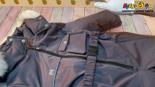 335715 Комбинезон Lanson Kids зимний на молнии с поясом и карманами темно-серый
