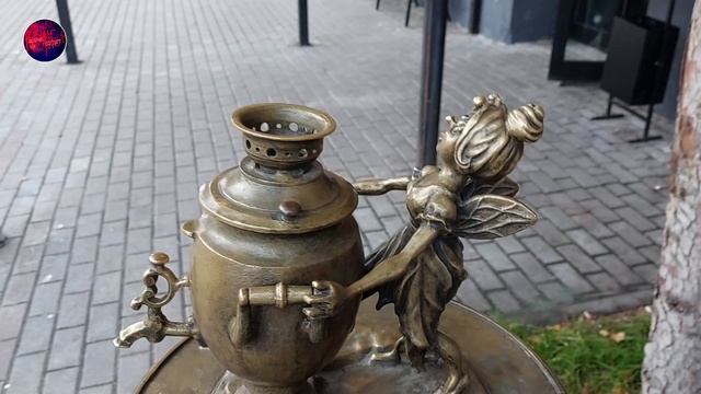 Арт-объект «Самовар желаний». Самовар держит «Муха-цокотуха», которая согласно детской сказке в стихах писателя Корнея Чуковского, купила его на базаре. Можно закинуть монетку в старинный самовар и загадать желание. Ликёрка Лофт. Россия. Город Тула. 31 октября 2023 года.