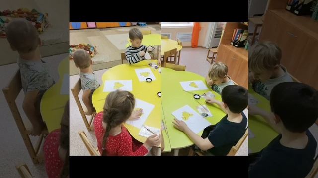 В группе "Золотая рыбка" прошла аппликация на тему "Цыпленок в скорлупе"