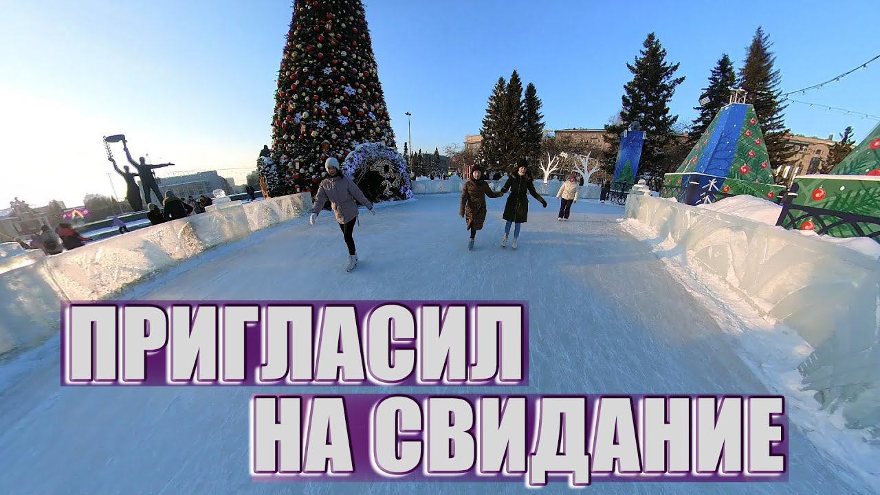 Свидание в центре города. Пригласил покататься на коньках.Каток в центре Новосибирска.Площадь Ленина