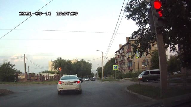 10/08/2021. Улица Гагарина. Проезд перекрёстка на запрещающий движение сигнал светофора. Госномер нарушителя у560рк 74
