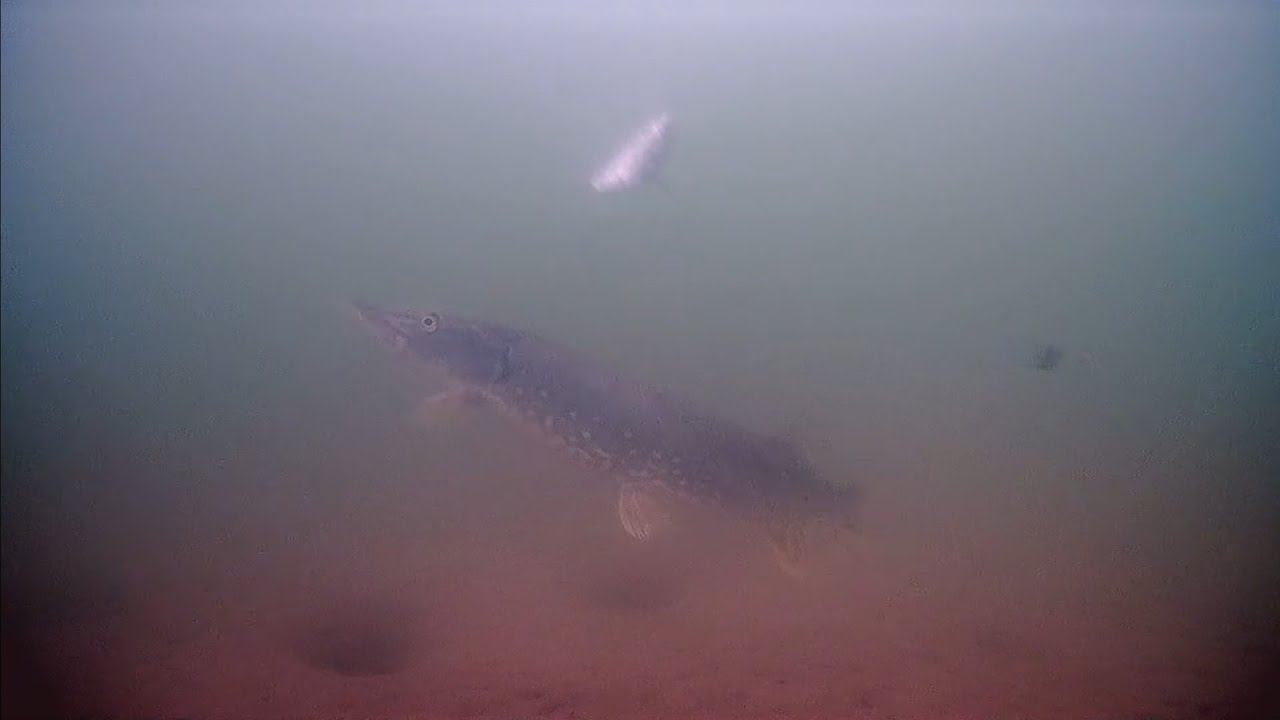 Первый лёд! Щука атакует живца подводная съёмка. Ловля щуки на жерлицы! Это надо видеть.