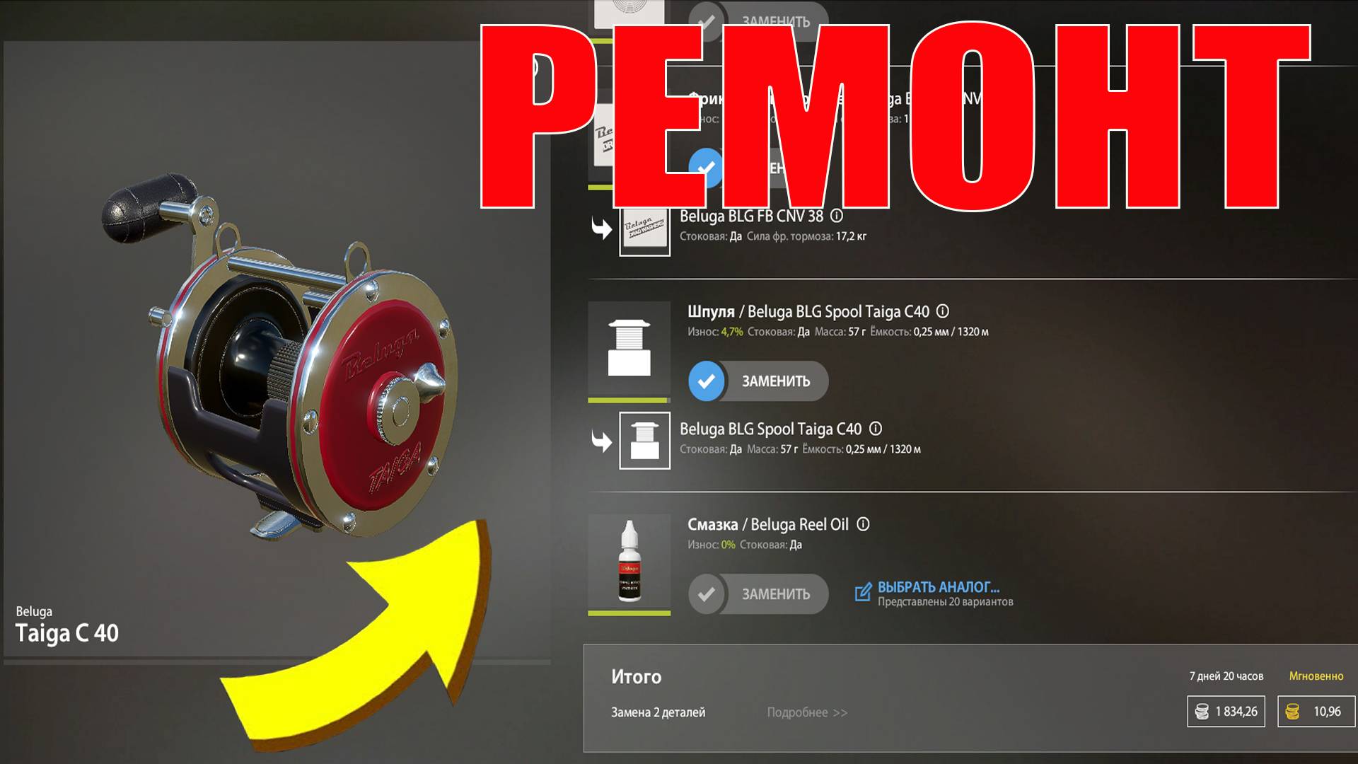 BELUGA TAIGA c40 СКОЛЬКО СТОИТ РЕМОНТ И НУЖНА ЛИ ВАМ ЭТА КАТУШКА? РУССКАЯ РЫБАЛКА 4 РР4
