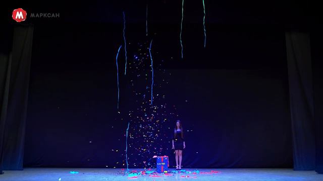 М141 Батарея хлопушек пневматическая 16 залпов (со звуком_ разноцветные ленты и прямоугольники)