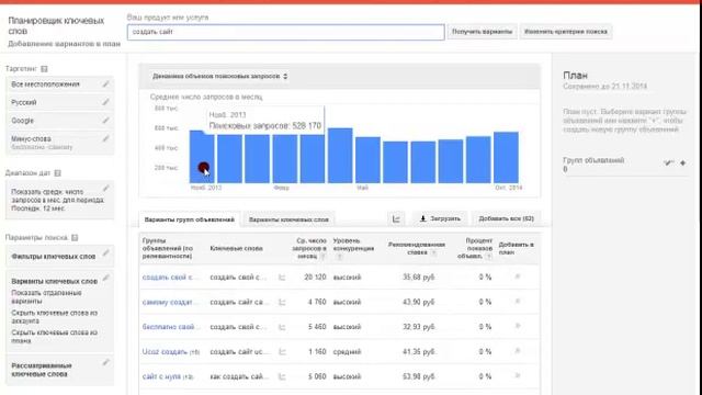 Как подбирать ключевые слова в Google AdSense, Вы узнаете в этом видео. Ещё больше информации о том, как раскрутить сайт и зарабатываать больше. чем сейчас, читайте на моём сайте: http://nuzhnaya-infa.ru/ Но следует помнить о том, что для написания статей, ключевые слова подбираются в инструменте проверки ключевых слов Вордстат Яндекс. Посмотреть обучающее видео о том, как подбирать ключевые слова в Вордстат Яндекс. Вы можете в видео. которое расположено по этой ссылке: http://youtu.be/tkL_EsLesOc А планировщик ключевых слов от Google AdSense это инструмент подбора ключевых слов для рекламных компаний, которые размещаются через рекламную сеть Google AdWords