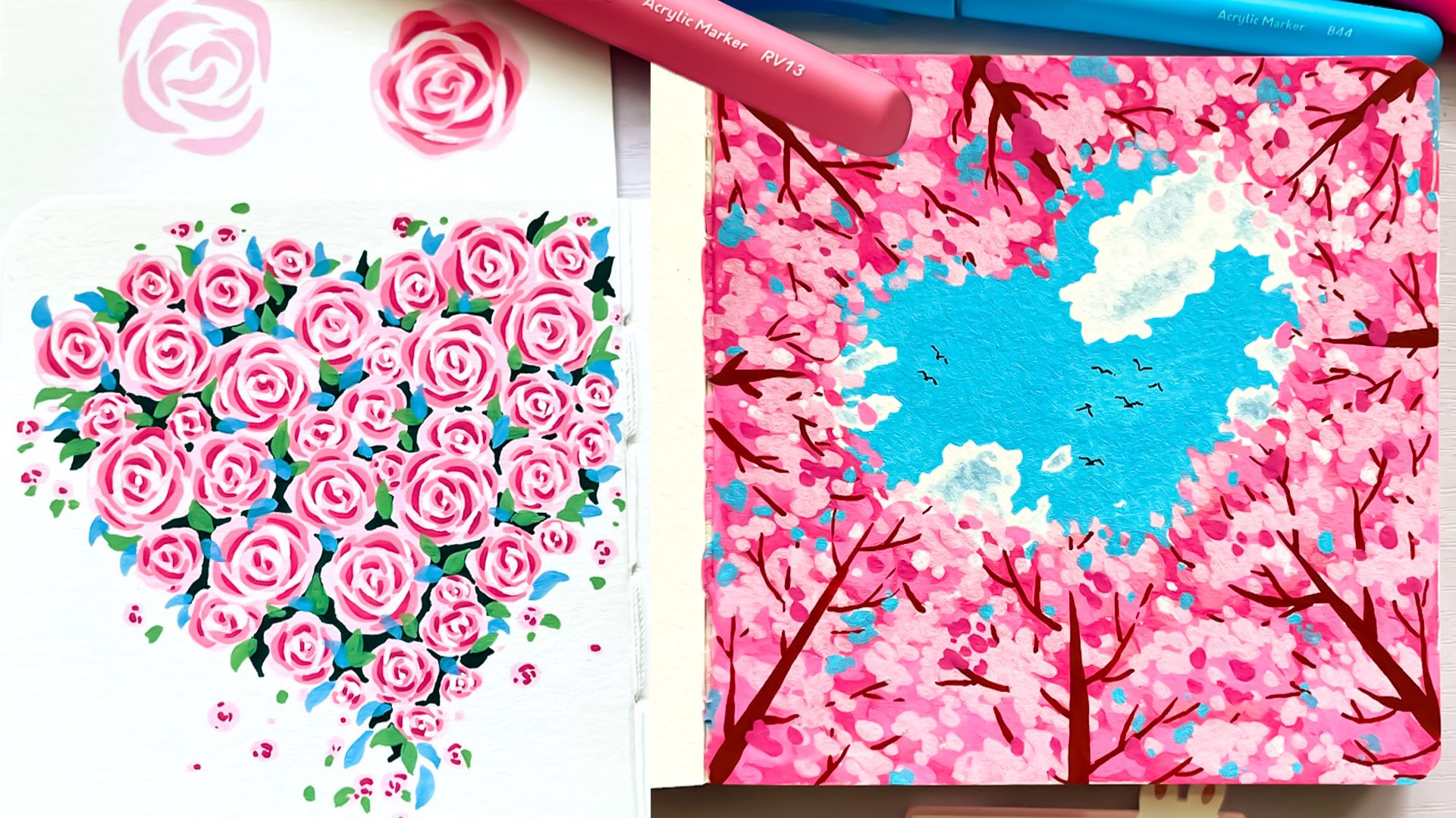 Как нарисовать Розу, ЛЕС в форме сердца. Акриловый маркер. Простые идеи рисования