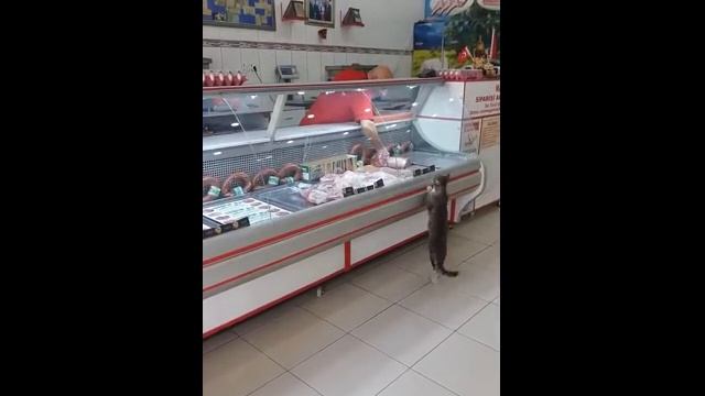 Кот в Турции пришел к мясному прилавку