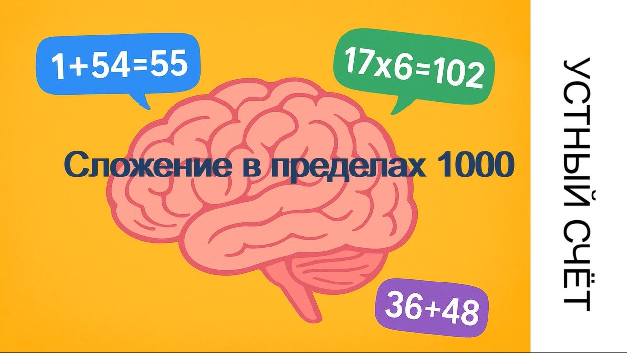 🧠 Сложение в пределах 1000 — важный этап в развитии устного счёта и мышления. В занятии разобраны приёмы, которые помогают ученикам понимать числа. Можно смотреть полностью или тренироваться по частям. 00:00 заставка 00:22 нейроразминка «Число– Рука» 02:32 примеры без перехада через десяток типа 100+3 05:12 примеры типа 100+10 07:32 примеры типа 100+11 11:10 примеры типа 100+121 14:59 примеры типа 120+2 16:53 примеры типа 120+10 18:38 примеры типа 120+12 21:15 примеры типа 120+125 23:23 примеры типа 121+2 25:00 примеры типа 121+25 26:27 примеры типа 121+325 28:27 примеры с переходом через десяток типа 120+90 32:33 примеры типа 120+92 35:20 примеры типа 120+192 39:07 примеры типа 134+85 42:51 примеры типа 125+96 47:55 примеры типа 135+186 Если тема актуальна - весь плейлист Устный счёт здесь https://rutube.ru/plst/1322546
