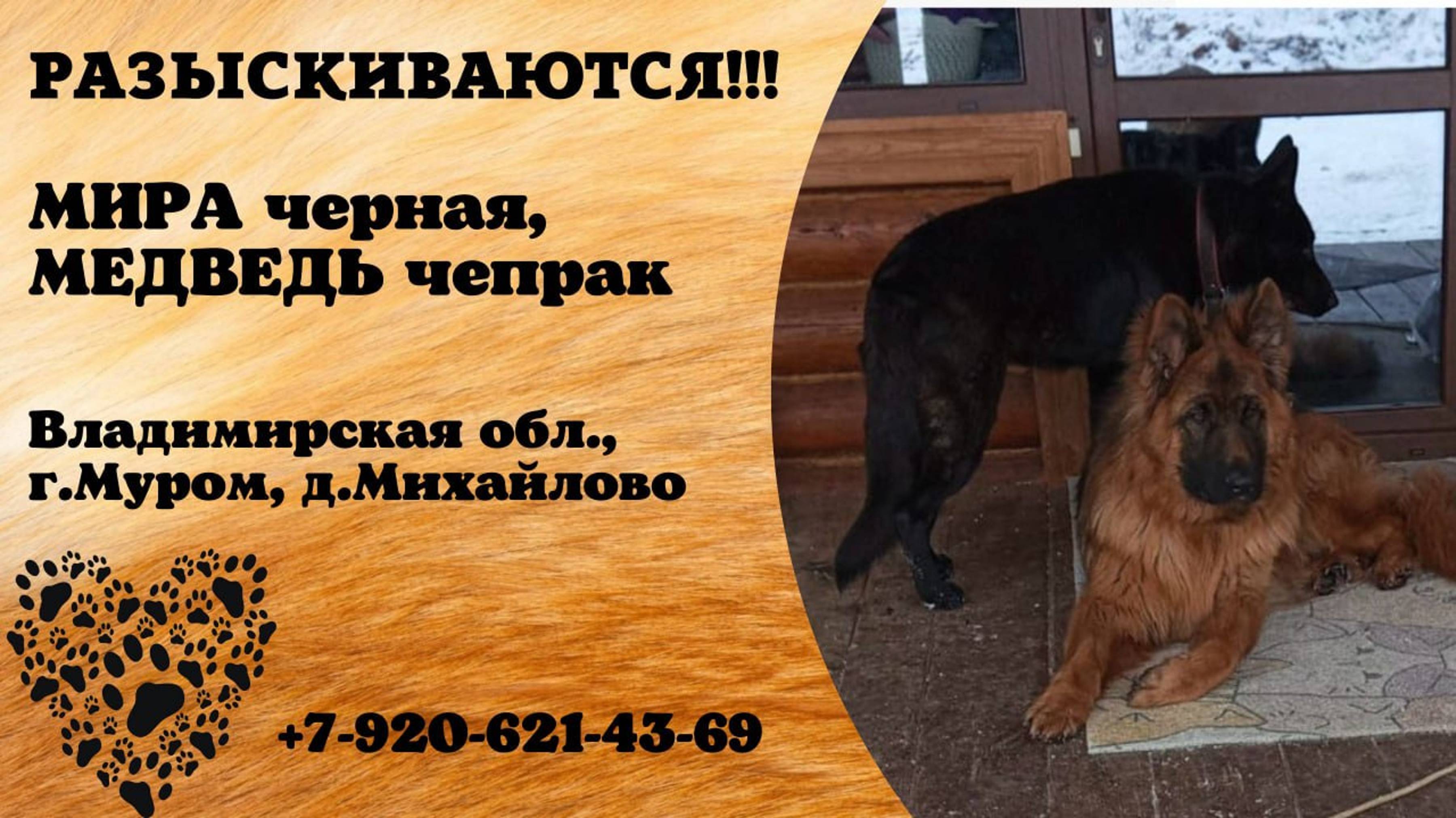 Пропали собаки! МИРА черная. МЕДВЕДЬ чепрак. Владимирская обл, г. Муром, д. Михайлово