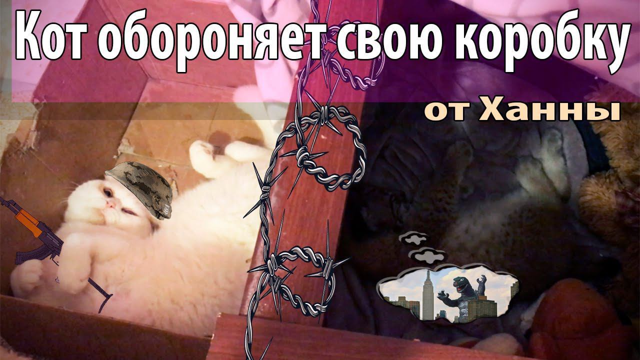 Кот защищает свою коробку от рыси, а та берёт и зависает во время нападения