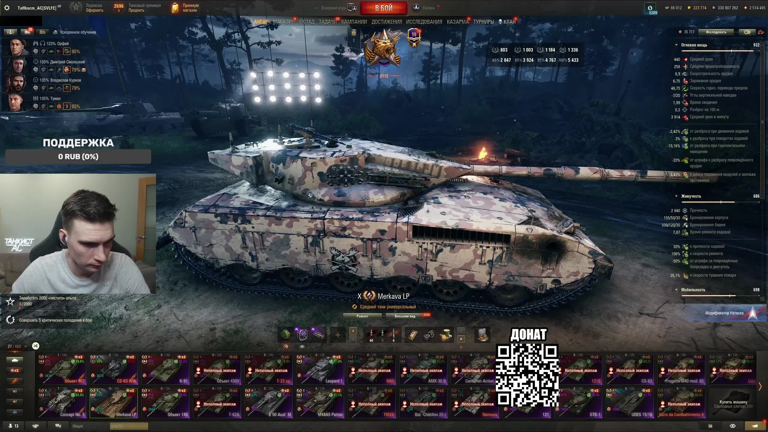 Поддержать стримера http://www.donationalerts.ru/r/tahkucm_ac Сбер без комиссии 2202 2062 2408 9735 напишите в чате, чтобы проверил Telegram https://t.me/TaHkucm_AC Канал VK Play Live https://vkplay.live/tahkucm Канал Бусти https://boosty.to/tahkucm Канал на трово https://trovo.live/TaHkucm_AC Канал Яндекс Дзен https://dzen.ru/id/62355e95d406852937d33526 Группа Вконтакте https://vk.com/tahkucm_ac Оборудование и модернизации на все танки https://docs.google.com/spreadsheets/d/16koQOrtKQKQrAy2Pgfm6GBeG8bA1tJP_7Vm78knwUXA/edit#gid=422106233 Настройки игры в скринах https://dzen.ru/a/YmFvHhJ9yi3rZO5M Моды со скринами установки https://vk.com/topic-136212047_47639792 По поводу рекламы писать в личку https://vk.com/v_xarlamow Всем привет! Меня зовут Виктор, мой ник TaHkucm_AC. На моем канале стрим мира танков каждый день с 8 или 9 по мск. Так же иногда стримлю вечером в произвольное время, чтобы не пропустить подпишитесь на оповещения в телеге или вк (ссылки выше). Играю в танки с декабря 2011 года, а стримить начал в начале 2017 года. Во время стримов общаюсь с чатом, помогаю советами по игре, объясняю тактику. Средняя статистика 65% побед и 4-5к вн8. Фан кланы SLPFR - Командиры marmyn и artlay - из требований только то, чтобы вы часто играли в танки. Укреп 10 уровня. Участвуют в ивентах на ГК, как минимум чтобы собрать пропуск на аукцион. L-DS - Командир DarkSpawn13. Укреп 10 уровня, плюхи по кд SVLFE - Командир Shadowlions. Требуется Team Speak (программа связи) для взводов и клановых покатушек. Участвуют в ивентах на ГК, как минимум чтобы собрать пропуск на аукцион. укреп 10 уровня