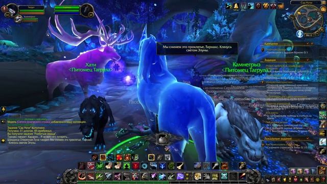 Собрав Дикую охоту Тагрул направился в Тирна Нох чтобы помочь в битве с приспешниками Мвезалы. Как оказалось Дамбалу уже воскрес и также находился в Тирна Нох но с помощью силы которую дала Леди Лунная Ягодка Тагрул одолел Лоа. После чего направился с докладом к Королеве Зимы. После чего о Бвонсамди пока что ничего неизвестно. Но тут Тагрула подозвала Изера и сказала что в Андервельде обитает душа по имени Тирнакс которая при жизни обладала силами Ночной Воительницы. Изера просит найти его и поговорить. Но Тирнакс не желает говорить и силе Ночной Воительницы и убегает но с вами заговаривает друг Тирнакса Кадарин который объяснят что у Тирнакса есть свои причины чтобы молчать. Кадарин просит помочь вас избавиться от сприганнов в его саду и обещает рассказать историю Тирнакса и попробовать уговорить его помочь вам. Кадарин рассказывает вам историю Тирнакса и говорит что обязательно его уговорит. Но в последней битве со сприганами Кадарина проклинают Тирнакс обещает рассказать всё что знает о Ночной воительнице если Тагрул поможет снять проклятие. Поговорив с Леди Лунной Ягодкой вы узнаёте что для того чтобы снять проклятие нужно несколько вещей включая памятную вещь о любви. Изера просит вас встретиться С Алекстразой и взять у неё такую вещ. Собрав все компоненты вы снимаете проклятие с Кадарина. Приятного просмотра)) https://www.twitch.tv/seregalitov1994