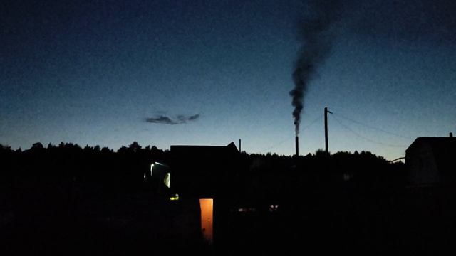 Ночь 🌃, дымок, топится баня на даче, красиво и спокойно ☺️