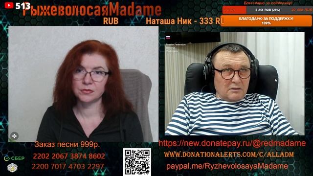 Стримы проводим на новом канале по ссылке https://www.youtube.com/channel/UCpd7cP8a8TbXkhRfZB9-V1g также стримы можно смотреть на следующих платформах https://vkplay.live/rmadame https://vk.com/video/ @RMadame https://boosty.to/ryzhevolosaya-madame Свежие нарезки можно смотреть https://dzen.ru/redheadmadamchat?share_to=link https://www.youtube.com/@RMadam1 https://www.youtube.com/@RMadame Пообщаться в голосовом чате, обсудить новости и узнать первым о предстоящем стриме можно подписавшись на телеграмм канал https://t.me/redheadMadamchat Все беседы ведутся с развлекательной целью и не направлены на разжигание какой либо вражды. Поддержать меня карта Сбер 2202 2067 3874 8602, Тинькофф 2200 7009 0724 4924 или голосовым донатом по ссылке https://www.donationalerts.com/r/alladm