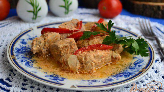 Свинина в сметанно-томатном соусе на пару
