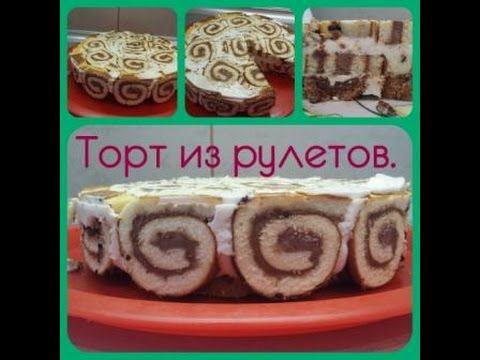 Торт из рулетов без выпечки.