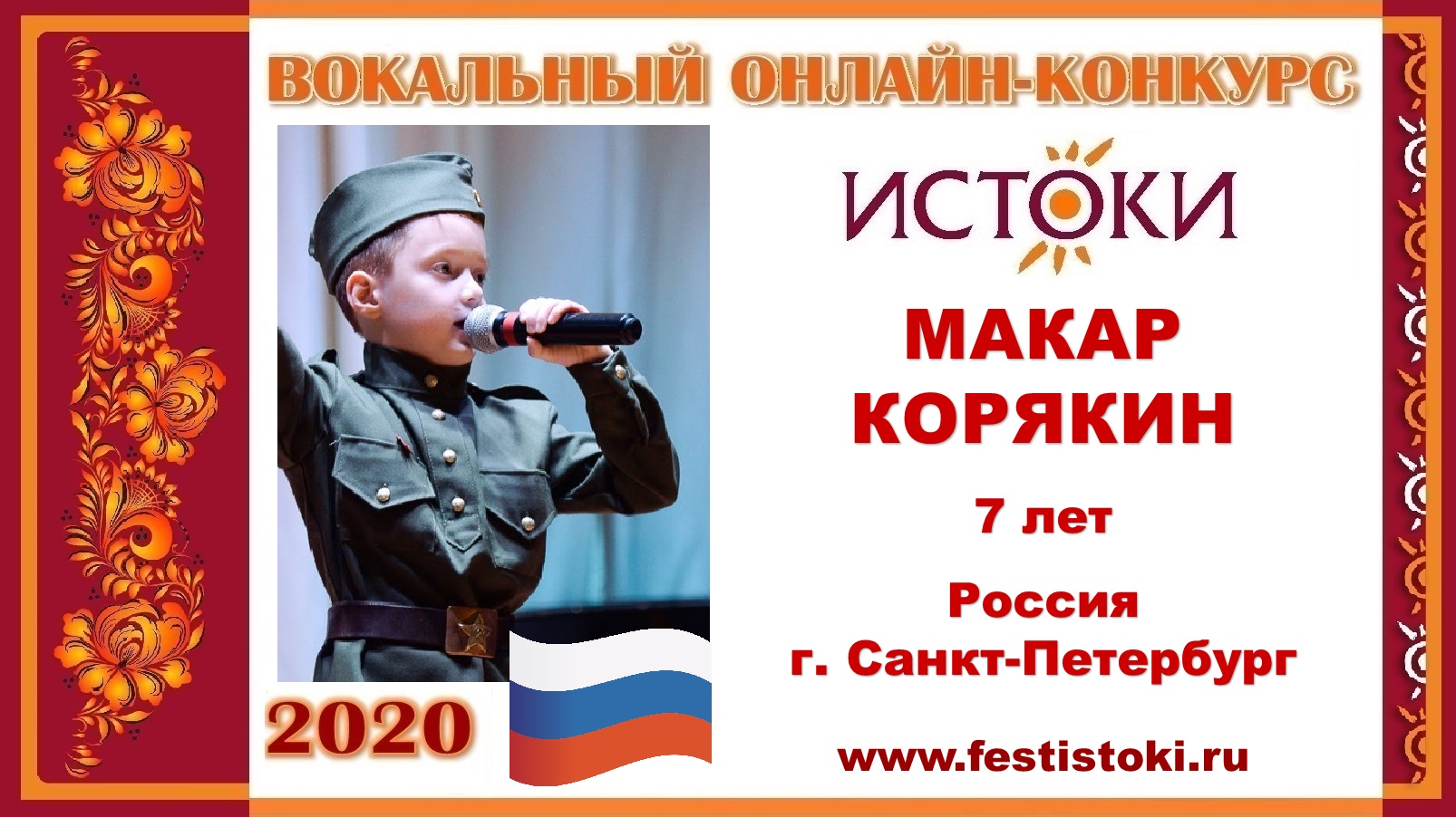 Участник Вокального онлайн-конкурса "Истоки"-2020. Песня "Моя армия". Авторы: Э.Ханок, И.Резник. Сайт: www.festistoki.ru / www.festistoki.com E-mail: festistoki@mail.ru