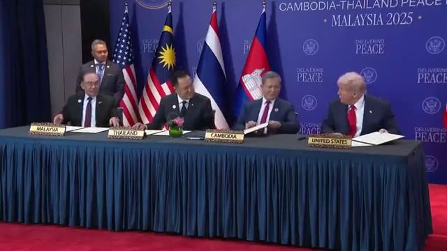 Премьер-министр Таиланда Анутин Чарнвиракул и премьер-министр Камбоджи Хун Мане подписали мирное соглашение под наблюдением Трампа 🇹🇭🤝🇰🇭 Трамп обнародовал детали мирного соглашения между Таиландом и Камбоджей Трамп выступает в Куала-Лумпуре перед подписанием Куала-Лумпурских мирных соглашений. Вот условия: 🟠 Обе страны соглашаются прекратить все военные действия и работать над построением добрососедских отношений 🟠 Восемнадцать камбоджийских военнопленных будут освобождены 🟠 Наблюдатели из стран АСЕАН, включая Малайзию, будут направлены для обеспечения сохранения мира