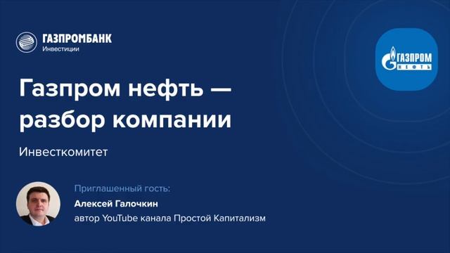 Запись эфира от 29.04.2021 ПАО «Газпром нефть» ведет освоение Приразломного месторождения, тестирует донные станции нового поколения для проведения сейсморазведки на шельфе Охотского моря и начинает развитие бренда GPN, под которым будет развивать инновационные проекты. Чем еще компания может быть привлекательна для инвесторов — обсудим в эфире. Спикеры конференции: ?? Алексей Галочкин, автор YouTube канала «Простой капитализм» ?? Дмитрий Фирсов, СЕО ООО «ГПБ Инвестиции» ?? Андрей Ванин, инвестиционный аналитик ООО «ГПБ Инвестиции» #Газпромнефть #Инвестиции #Инвестирование