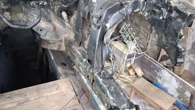 Лобовой удар. Сломаны лонжероны. Замена левой четверти.