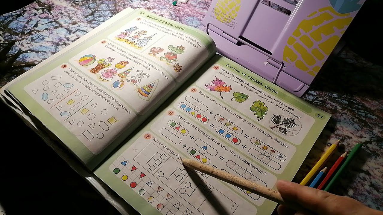 Занимаемся по пособию для дошкольников Л. Г. Петерсон, Н. П. Холина. Математика для дошкольников. 5-6 лет. 12 занятие. РАЗ - ступенька, ДВА - ступенька. Часть 1. Справа. Слева.