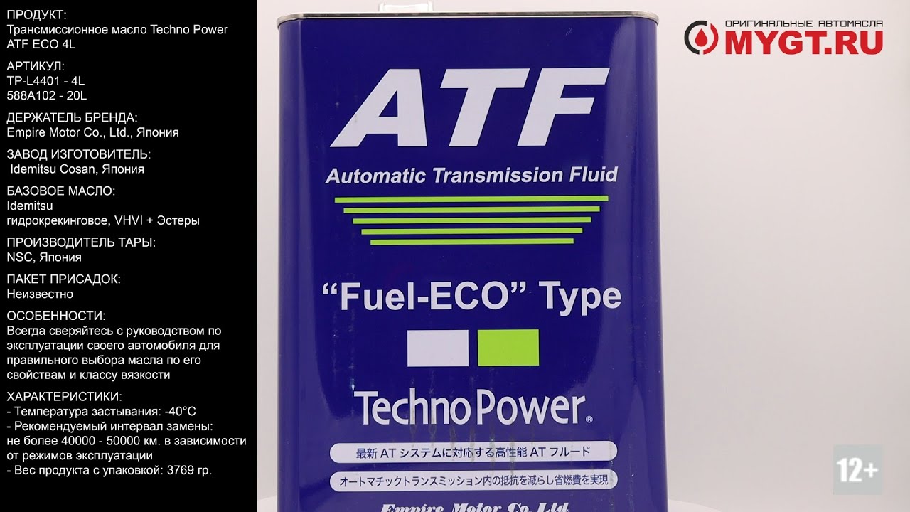 Трансмиссионное масло Techno Power ATF ECO 4L TP-L4401 #ANTON_MYGT