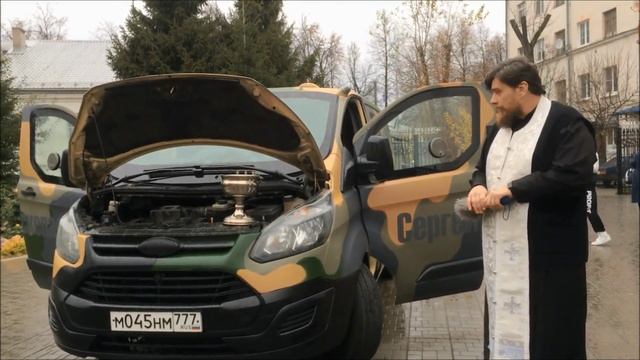 Бронированный автомобиль "СЕРГЕЙ ПУСКЕПАЛИС." Чин освящения перед отправкой на Донбасс.